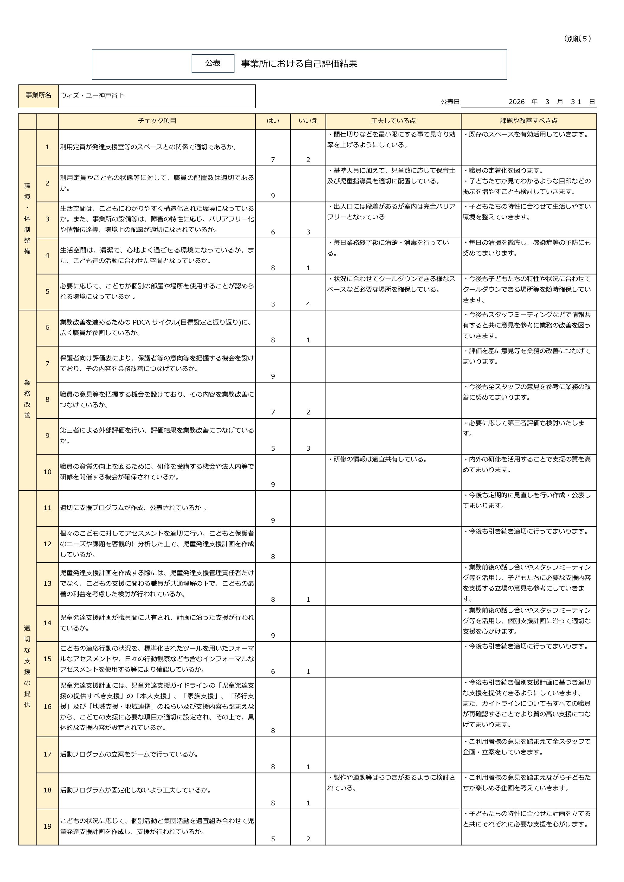 自己評価 令和7年度 児童発達支援