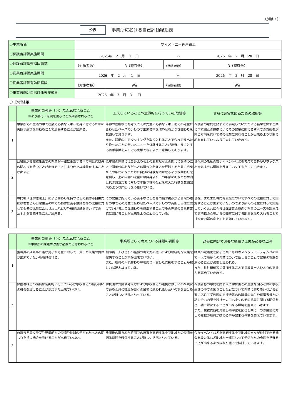 自己評価 令和7年度 放課後等デイサービス